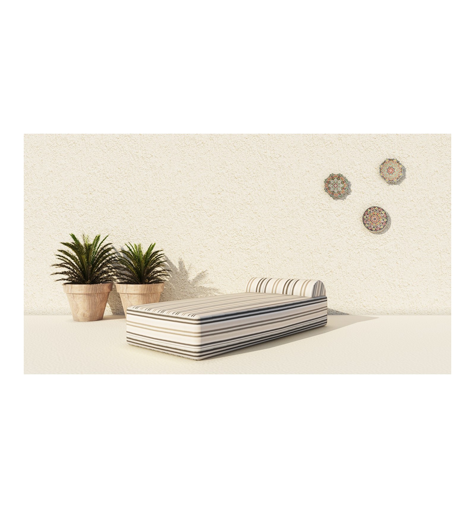 Tejido “EXTERIORES” capaces de resistir y perdurar años sin perder sus propiedades ante los rayos UV, la humedad, el agua clorada o de mar, repelen el agua y las manchas, fácil de cuidar. Puede ser utilizados durante todo el año, la diversidad de estampados, coloridos y texturas muy agradables nos dan la posibilidad de disfrutar de ellos tanto dentro como fuera de casa. Disfrute del aire libre, relájate, desconecta de la rutina sin preocuparte de los tejidos. Composición:. Fibra acrílica, teñida en masa y seguidamente hilada, así de esta manera si el sol o el agua desgastan el tejido, no se pierde el color, y el tinte llega hasta el interior del hilo.
